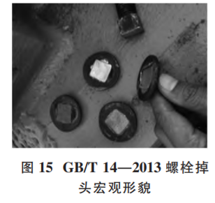 (1)失效案例。該案例為 GB/T 14—2013《扁圓頭方頸螺 栓》,性能等級 4.8 級,在安裝使用過程中發(fā)生掉頭,見圖 15。