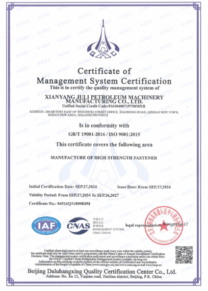 咸陽聚力石油機械制造有限公司主要經營 咸陽高壓螺栓,高低溫螺栓,螺母 等產品,歡迎前來咨詢