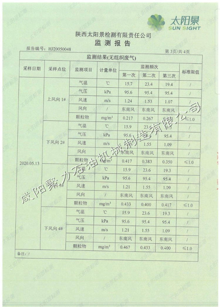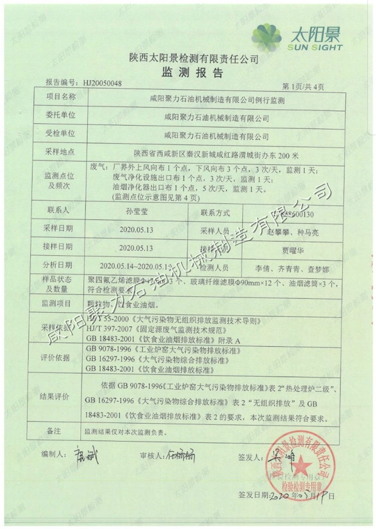 咸陽聚力石油機械制造有限公司例行監測報告: